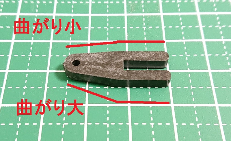 フレームの形状を見て、「曲がり大」がコース床側(車体下側)になるよう取り付けてください。
