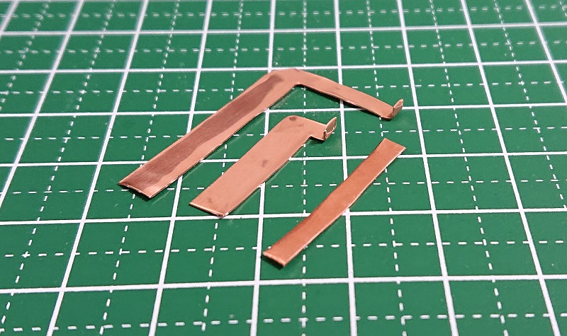 商品に同梱されていた紙の「ターミナル製作台紙」を、付属の銅板(厚さ0.3mm)に両面テープで貼り付けます。