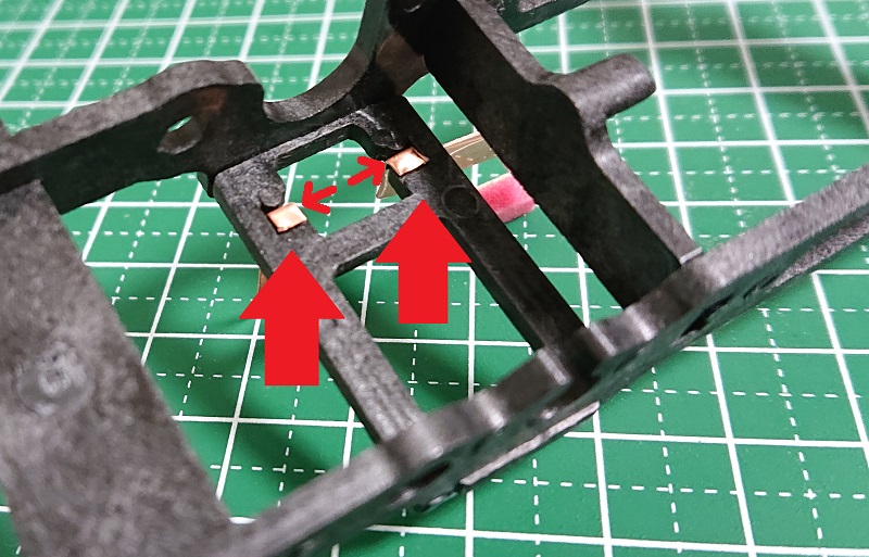 下図矢印部分にも隙間がないことが確認できたら接着します。