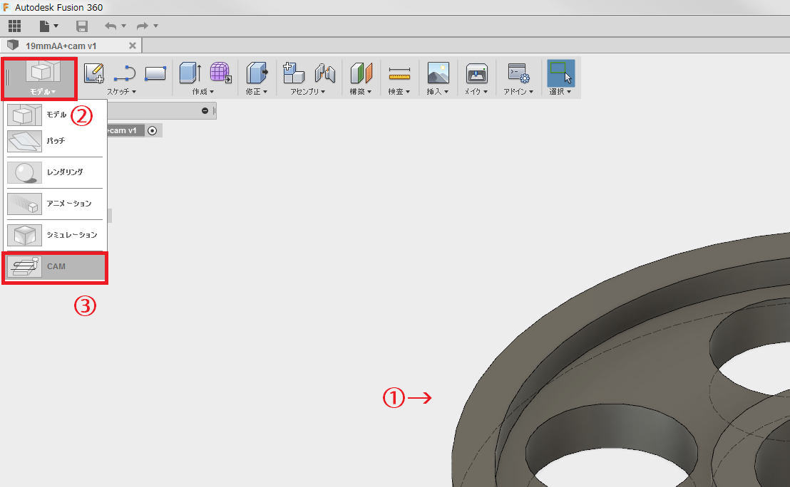 ドリルマークのタブを選択し、「工具」の項目をクリックしてください。