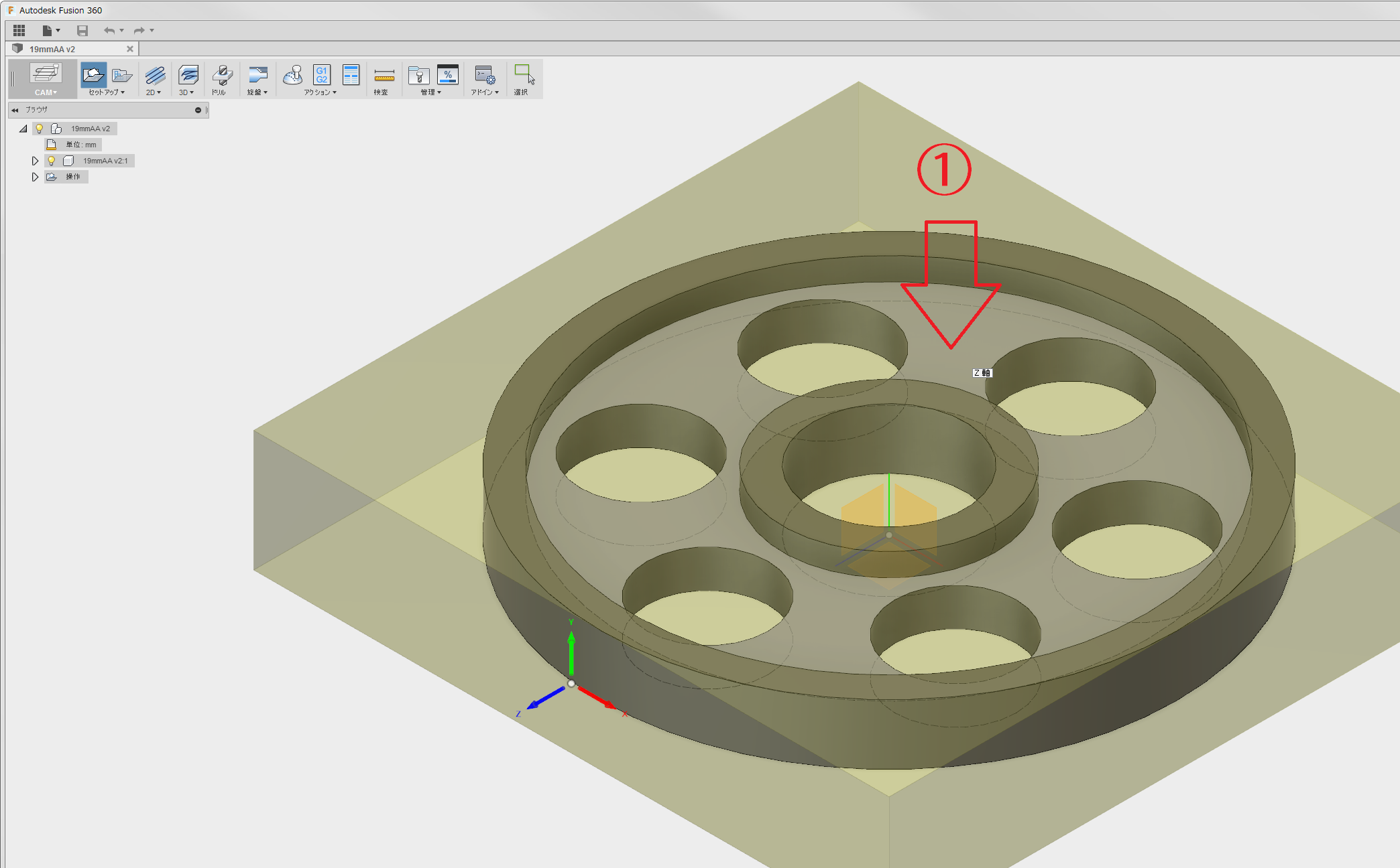 これが底面に1周だけしか描写されていない場合には、刃物は一発で底面まで切削しようとしますので、結果として刃物が折れることになります。