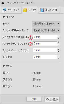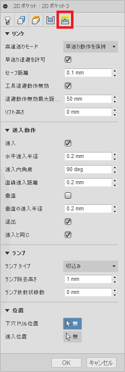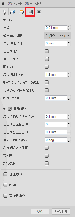 POMのように柔らかい材料を削る場合には、この値を0.2mmに増やして加工時間を短縮させることができます。