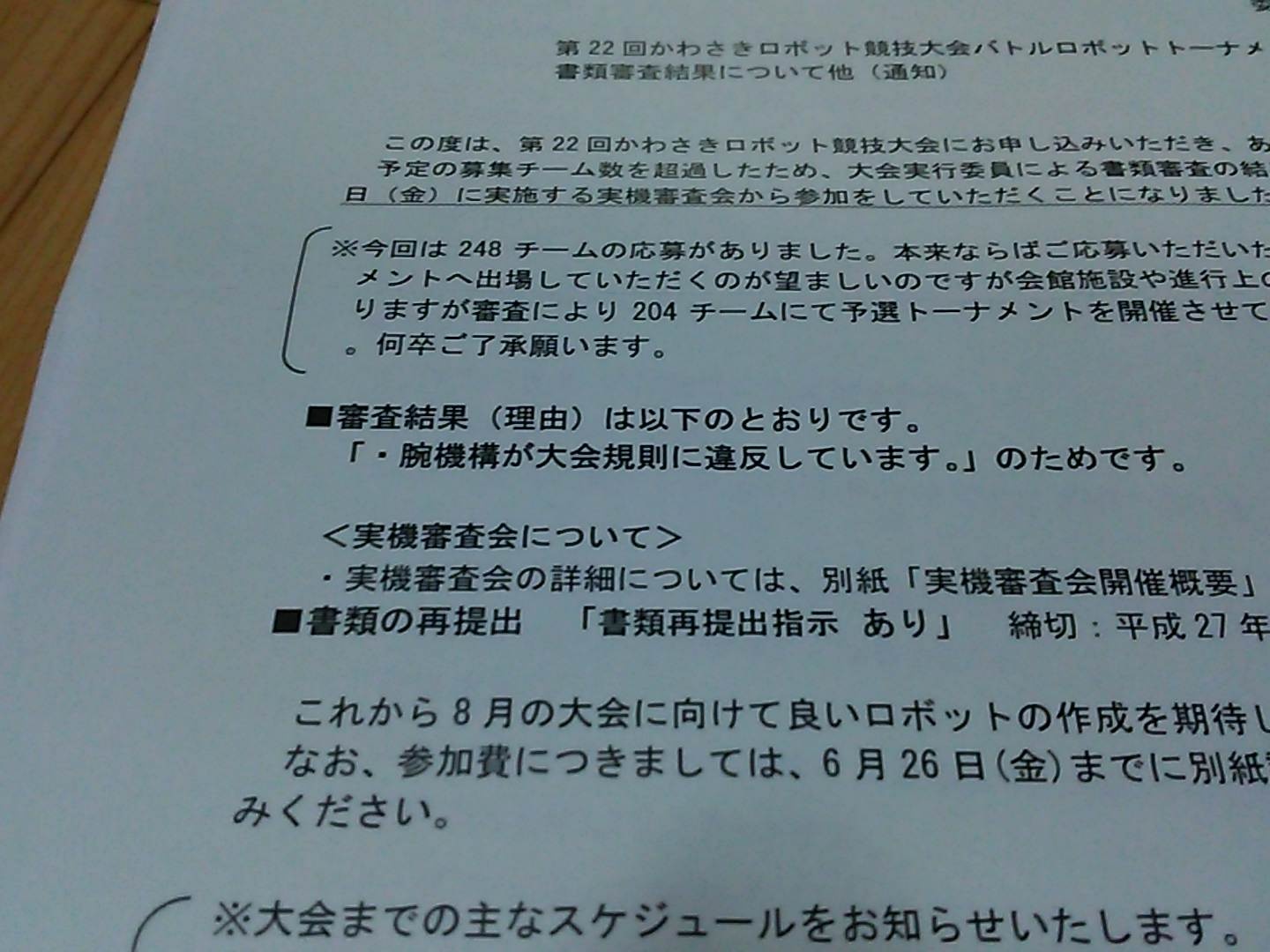 今年は書類がうまく通らなかったため、実機審査として8/21(金)からの出場でした。