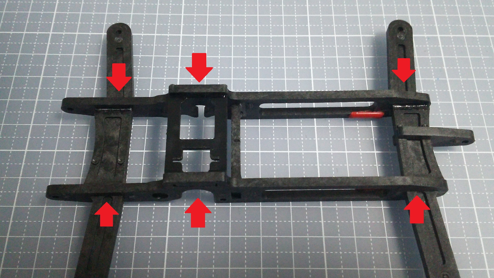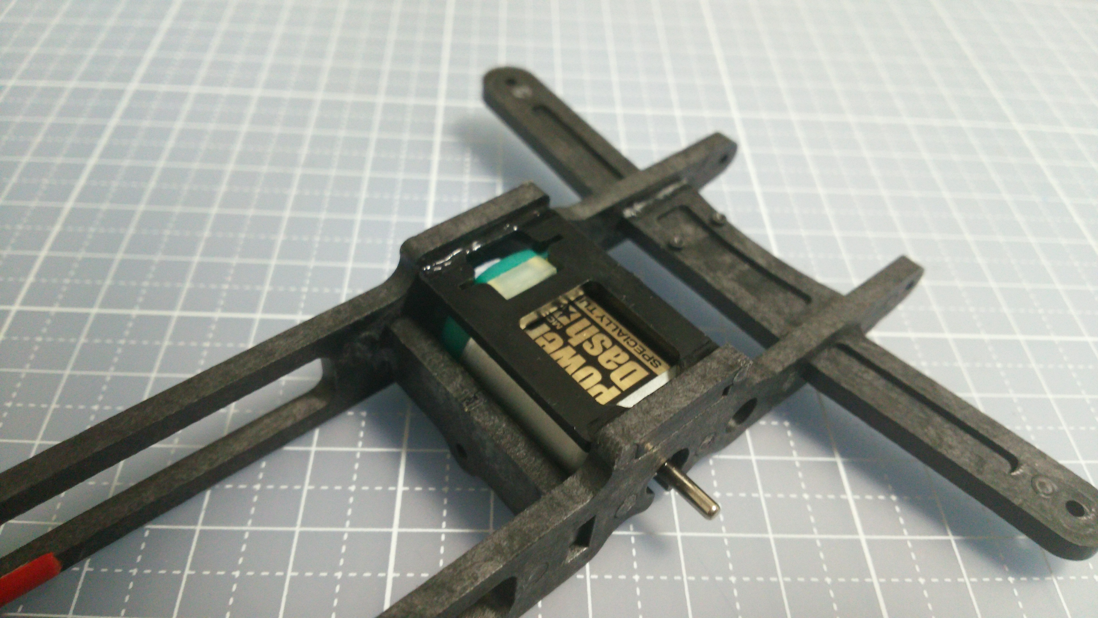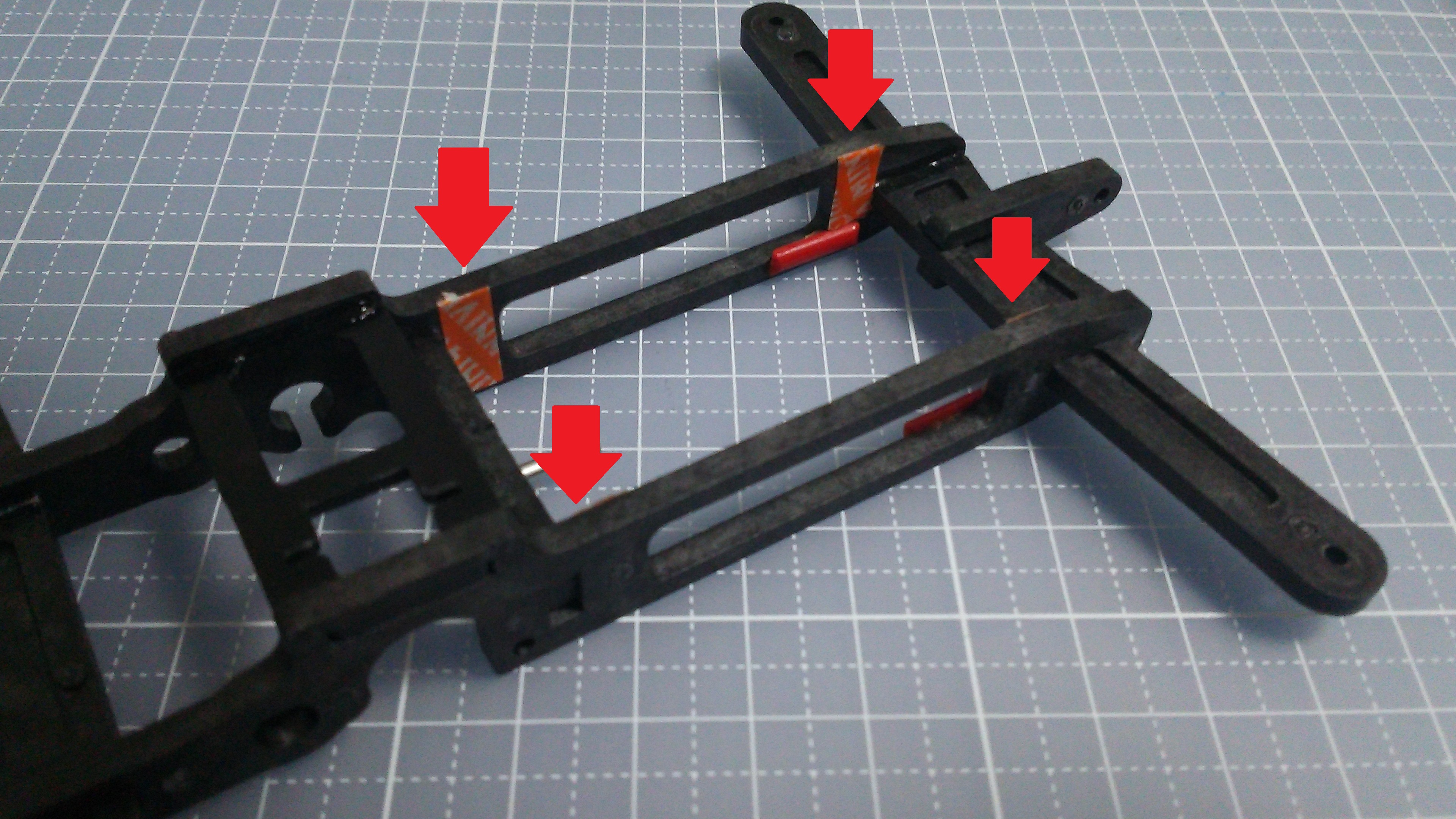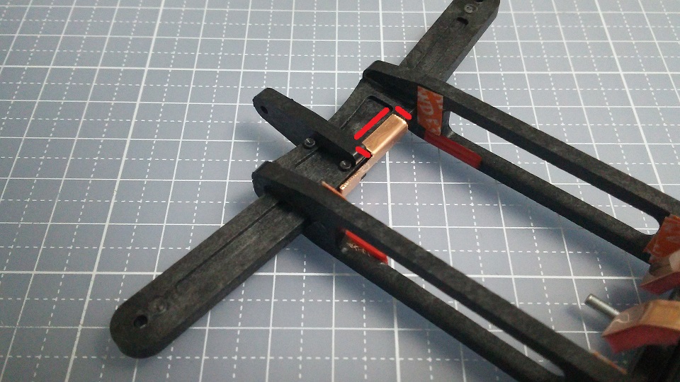 ※モーター周辺のフレームが出っ張っていています。これが邪魔で当てにくい場合は5mm以上の平らな板をひき、そこで作業すると簡単です。