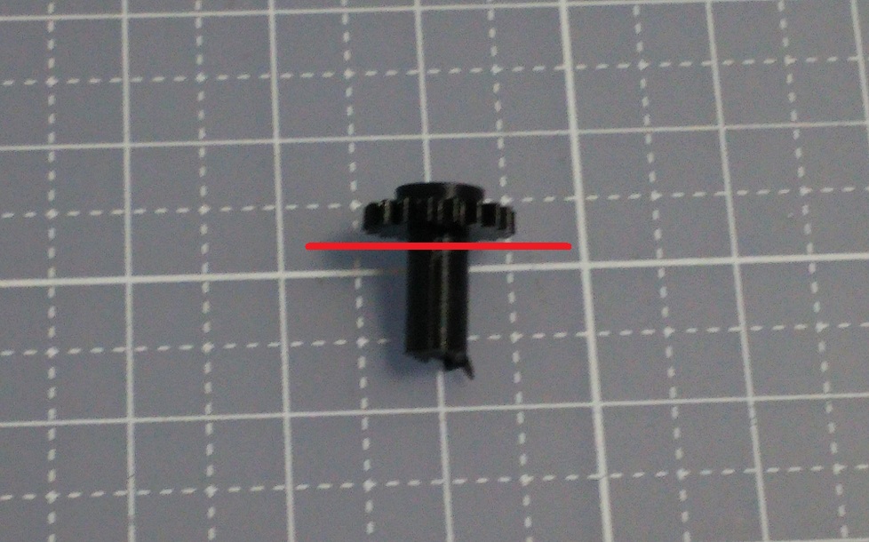 付属ギアの「穴の無い方の円柱部分」は根本から切り取ってください。