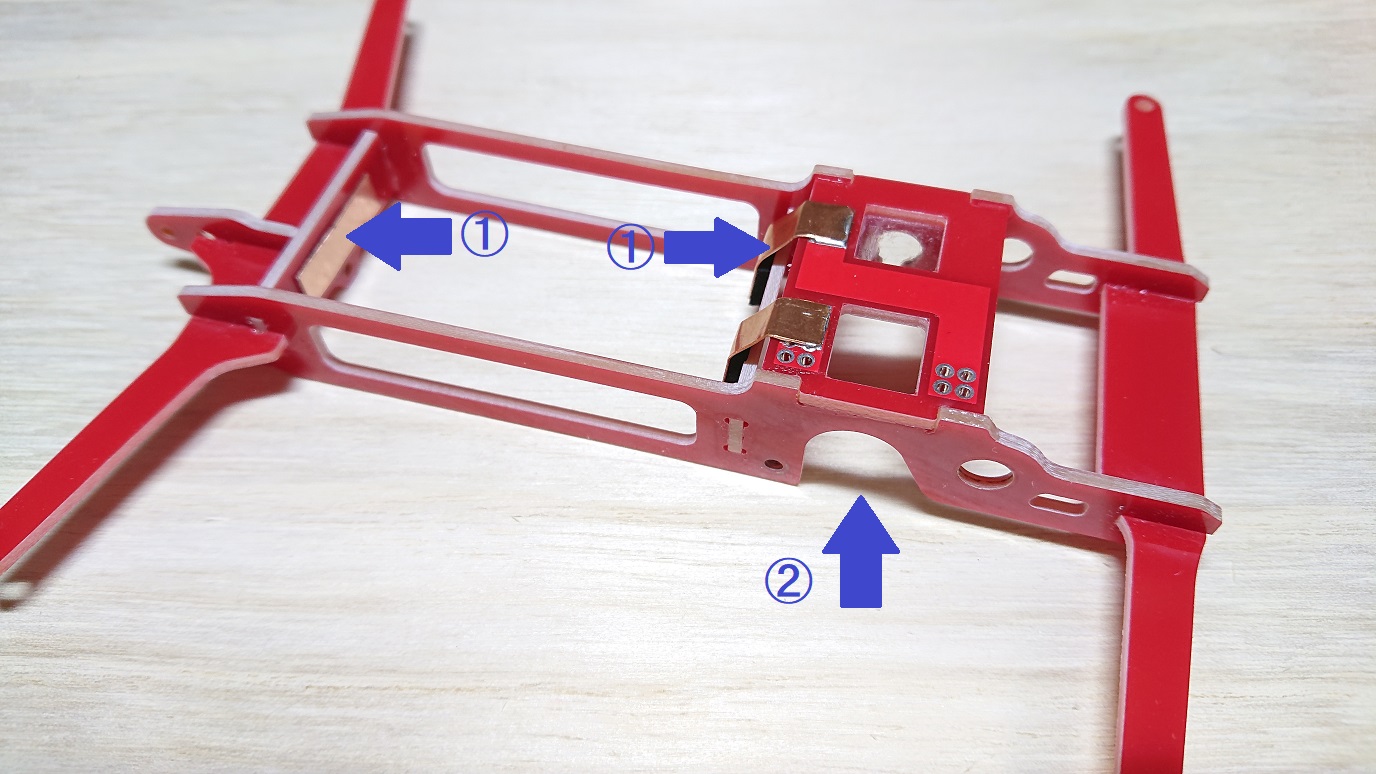 ②モーターとフレームの間に差し込む