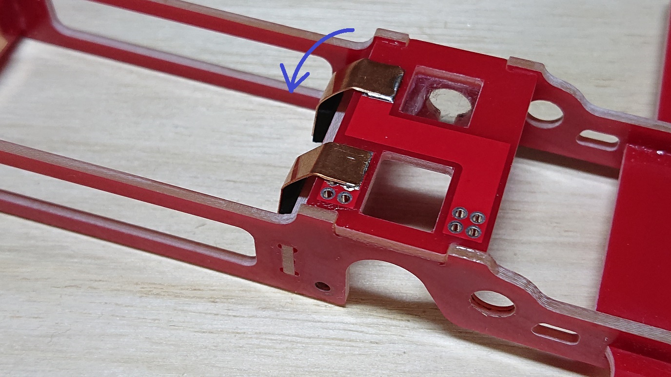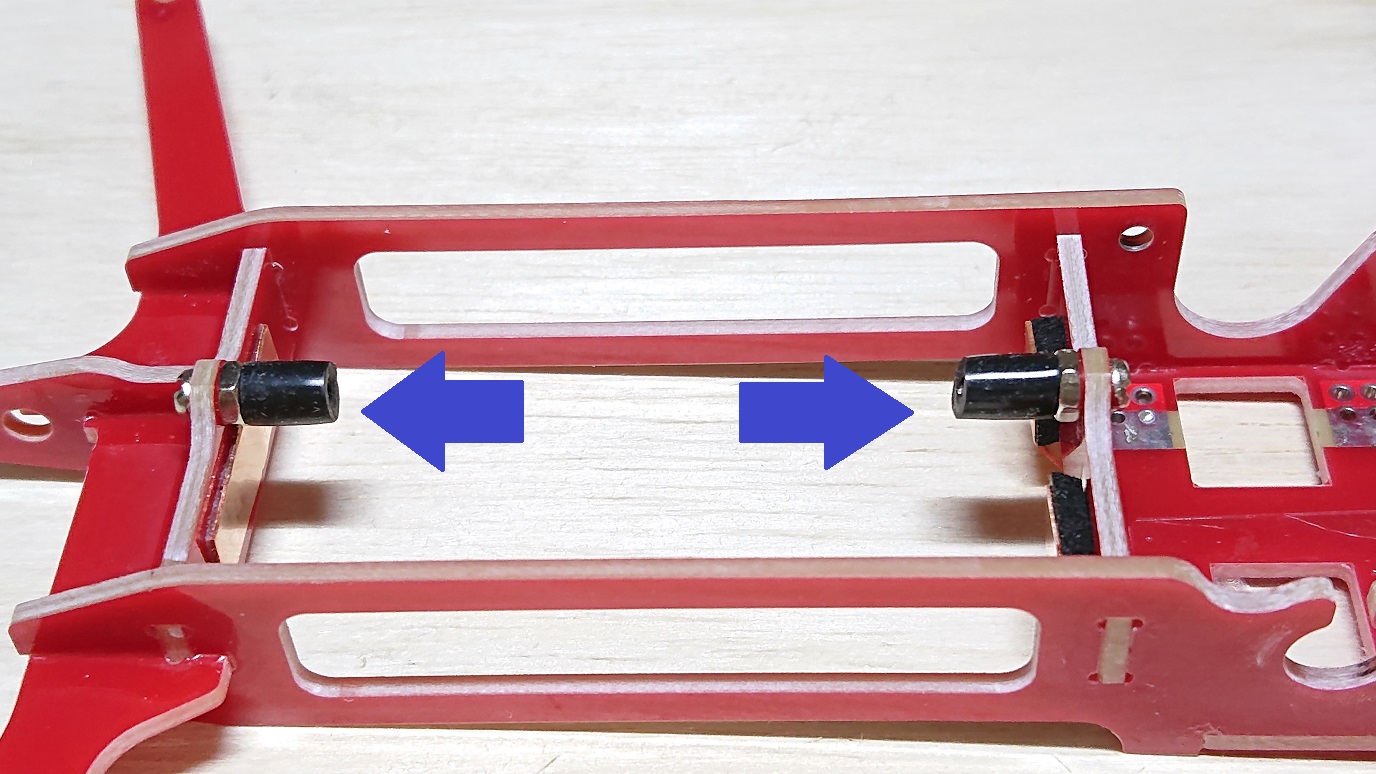 2)車体の取り付け穴をΦ2.0mm→Φ2.2mmなどに拡張する。または丸ヤスリなどで長穴にする。