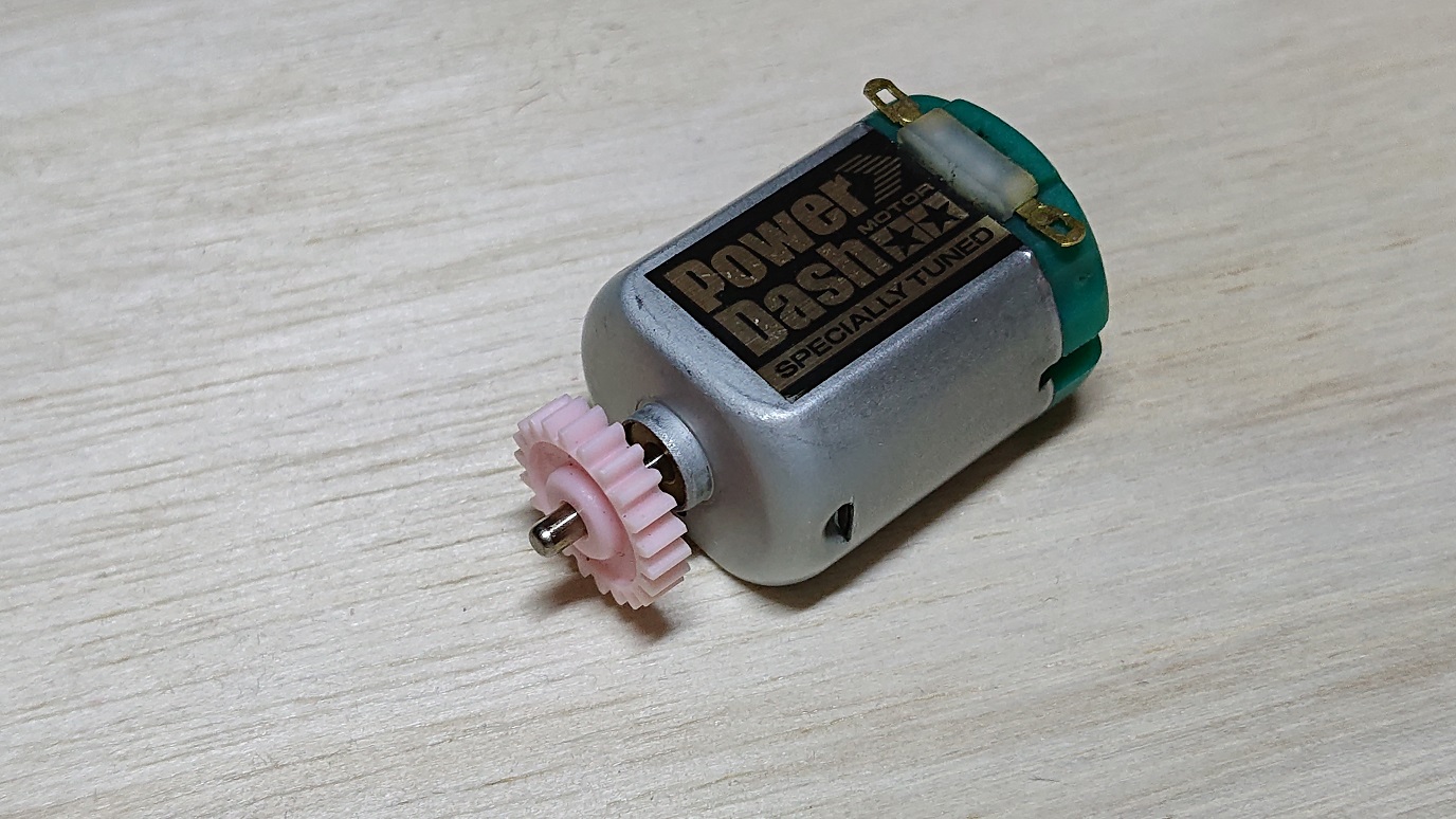 モーターにはピンクのギア(両軸用)を取り付けます。