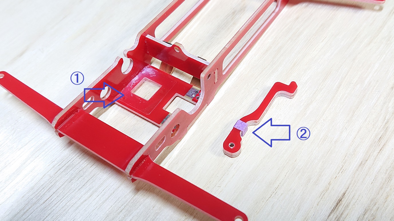 1)天板のモーターが当たる部分にポリカボディの切れ端を貼る