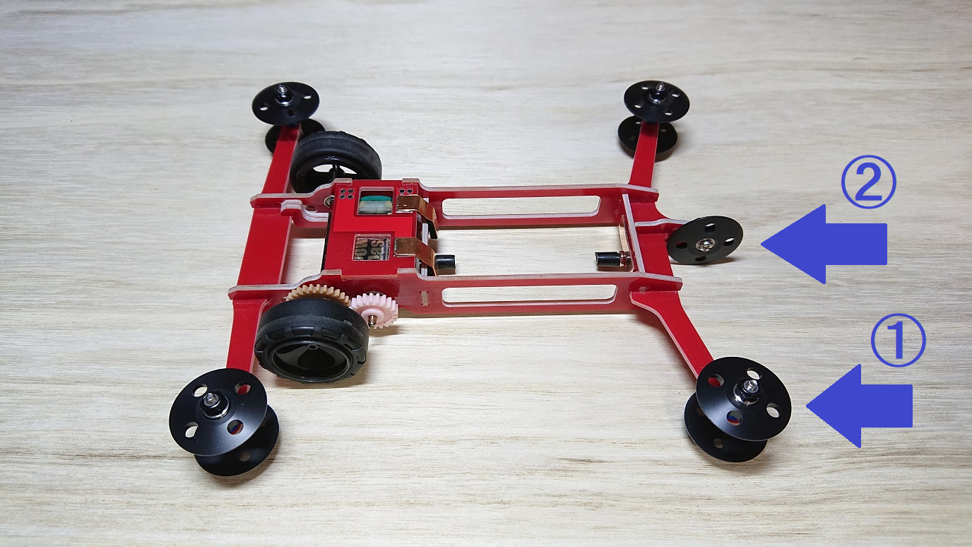 ローラーの取り付け位置をコース幅ギリギリにしてあるため、組み立て方やコース幅によってはローラーがつかえてコースに入らない場合があります。