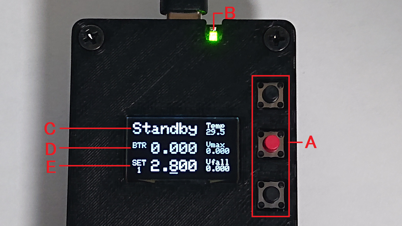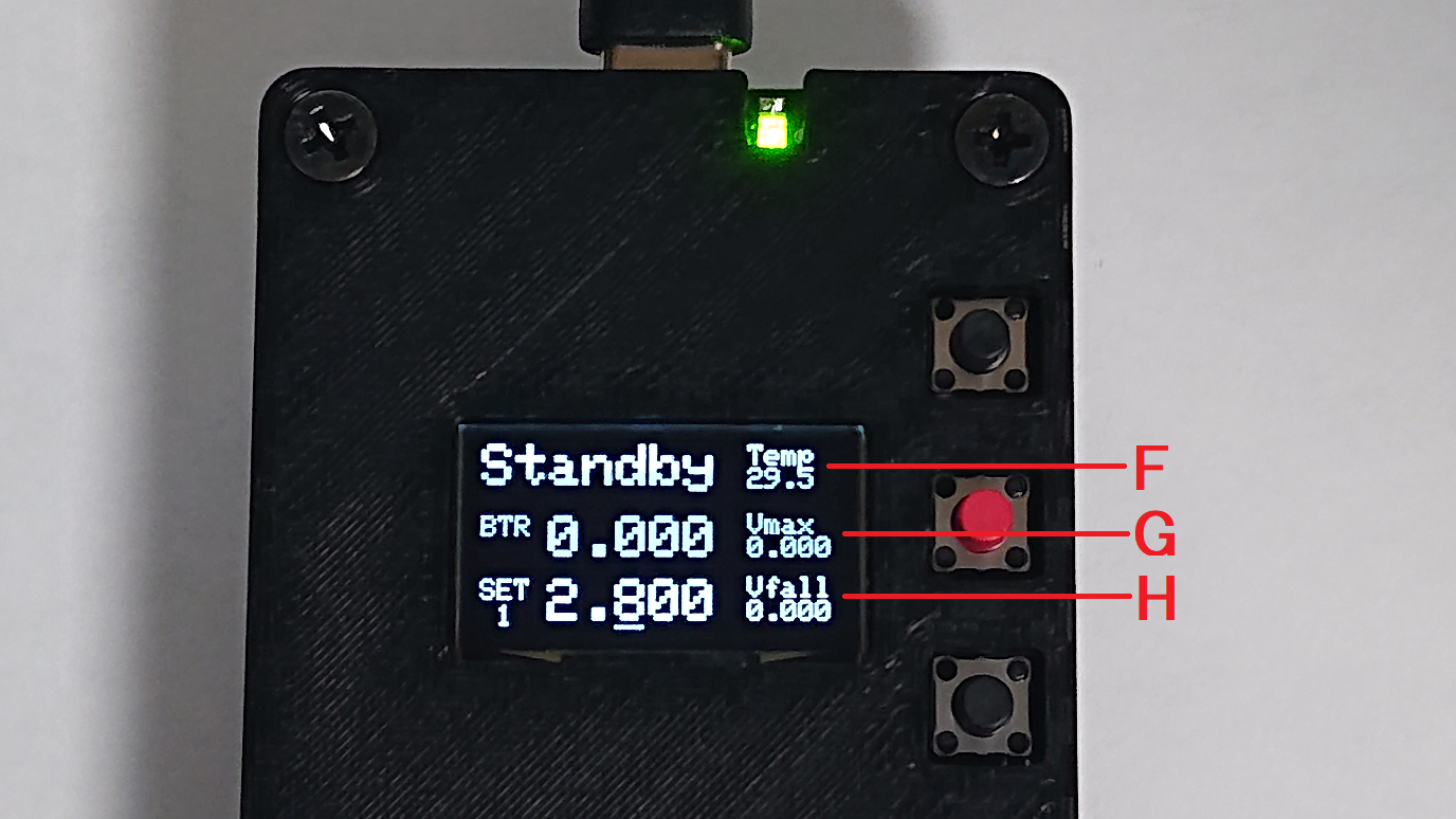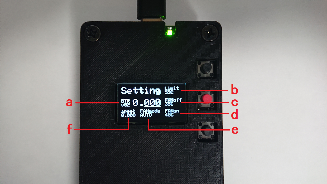本体内部、発熱部の温度が表示されます。一定以上発熱すると充放電が停止します。